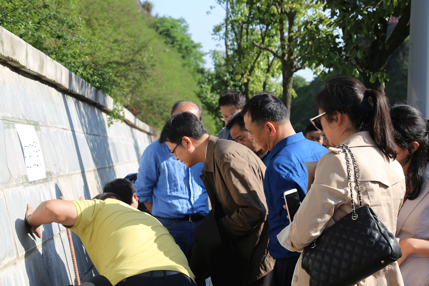 2018.5.7 16:30 銅仁市及貴陽(yáng)市領(lǐng)導(dǎo)驅(qū)車(chē)到達(dá)楊柳井百山項(xiàng)目1082地塊,視察楊柳井1082地塊植物景墻,并對(duì)景墻施工方案及技術(shù)進(jìn)行了解,并對(duì)我們的成果給出了肯定。