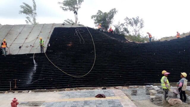 龍水路二期生態(tài)袋邊坡施工進度展示